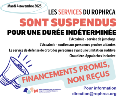 Dans les dernières semaines, les enjeux liés aux plateaux de travail sont fortement ressortis dans les médias. Au ROPHRCA, plusieurs de nos membres offrent aux personnes qui fréquentent leur organisme la possibilité de participer à des plateaux de travail. Bien qu’il y ait des enjeux réels, nous constatons, selon notre expérience, que ces milieux répondent à des besoins importants qui ne seraient pas répondus autrement. Les intervenant.e.s qui travaillent dans ces milieux sont des personnes dévouées, à l’écoute et qui mettent du cœur à leur travail. Ils et elles font en sorte que ces milieux soient enrichissants pour les personnes qui les fréquentent. Bien sûr, il y a un manque à gagner important au niveau des investissements gouvernementaux qui visent à faciliter l’accès à l’emploi rémunéré pour les personnes qui le souhaitent.